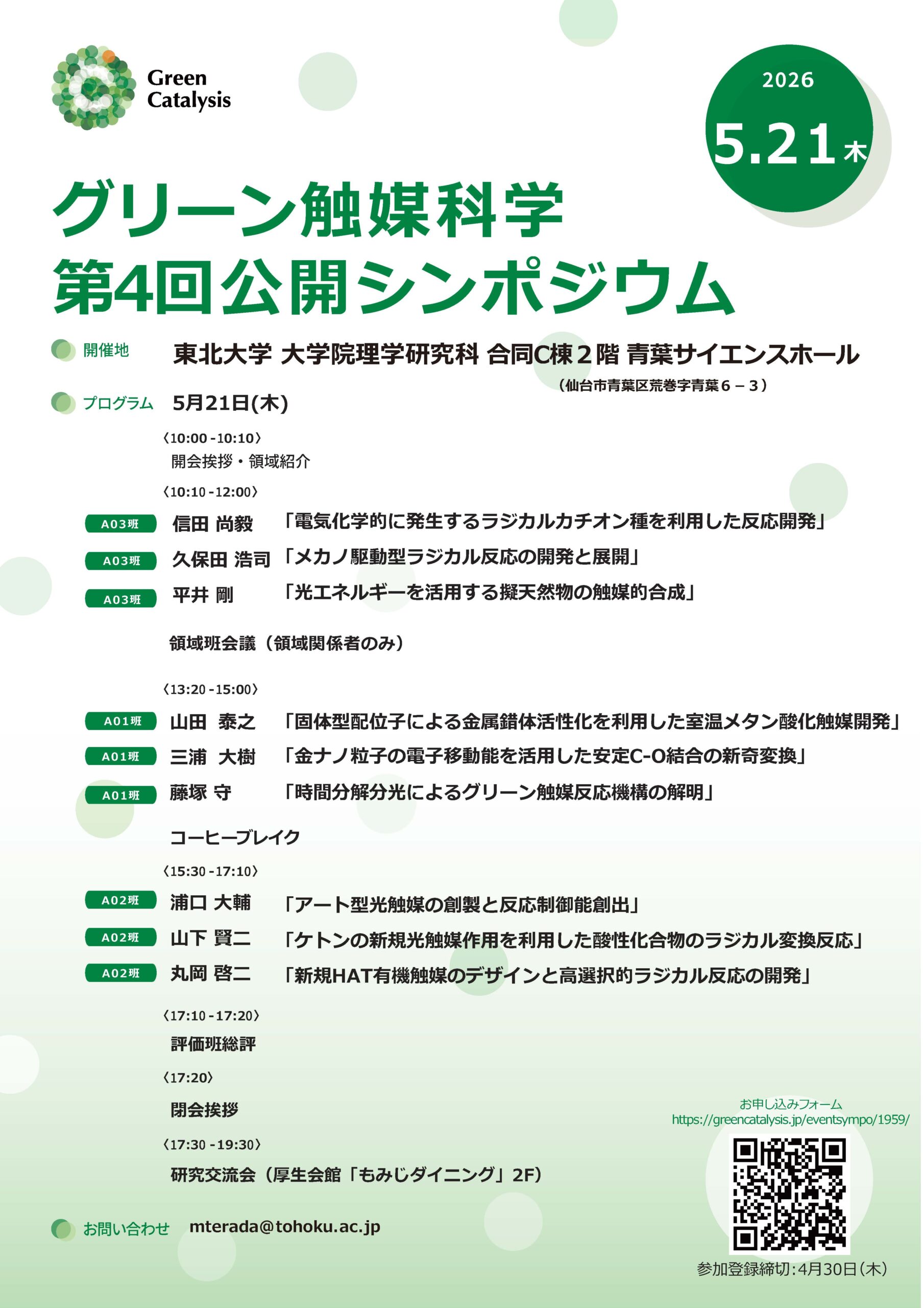 2026年5月21日(木)にグリーン触媒科学第4回公開シンポジウムを開催します。